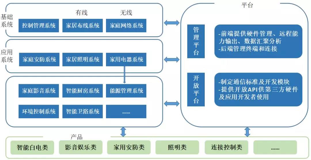 智能家居平臺的概念與Facebook、蘋果App應(yīng)用商店類似,智能家居平臺商制定通信標準及開發(fā)模塊等,然后提供開放API(應(yīng)用程序編程接口)供第三方硬件及應(yīng)用開發(fā)者使用,所有的硬件及應(yīng)用產(chǎn)品就可以無縫連接至平臺操作系統(tǒng),進而平臺商、第三方硬件及應(yīng)用開發(fā)者、用戶構(gòu)成一個全新的智能家居平臺生態(tài)鏈。目前國內(nèi)市場上活躍度比較高的有青島海爾家居集成股份有限公司、全智慧科技(北京)有限公司、美的集團股份有限公司(公開A股)、小米科技有限責任公司、深圳市電陶思創(chuàng)科技有限公司、北京京東世紀貿(mào)易有限公司、北京百度網(wǎng)訊科技有限公司、阿里巴巴(中國)有限公司等8家企業(yè)。
