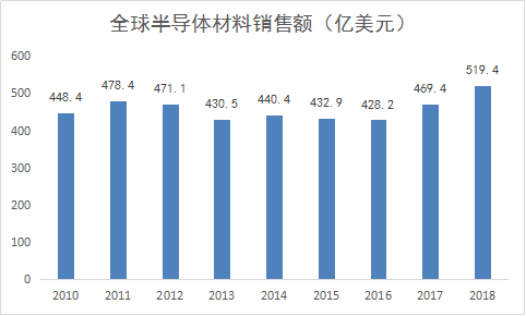 SEMI數(shù)據(jù)顯示,2018年全球半導(dǎo)體材料市場(chǎng)銷售額約519.4億美元,其中制造材料銷售額約322億美元,封裝材料銷售額約197億美元。在整個(gè)電子信息產(chǎn)業(yè)中,半導(dǎo)體材料的產(chǎn)值雖不能算極高,但卻具有極大的附加值和特有的產(chǎn)業(yè)生態(tài)支撐作用,半導(dǎo)體材料的自主可控關(guān)乎整個(gè)電子信息產(chǎn)業(yè)生態(tài)安全。