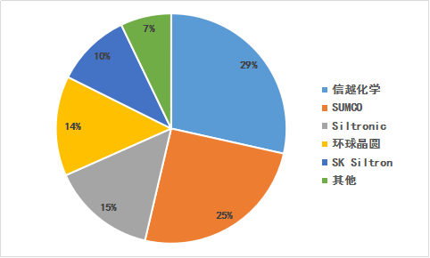 從全球來(lái)看,硅材料具有高壟斷性,全球一半以上的半導(dǎo)體硅材料產(chǎn)能集中在日本,尤其是隨著尺寸越大、壟斷情況就越嚴(yán)重。2018年,全球前五大半導(dǎo)體硅片廠份額近92%,其中Shin-Etsu(信越化工)、Sumco、Siltronic、Global Wafers(環(huán)球晶圓)與SK Siltron分別占比為28.50%、25.15%、14.69%、14.04%、10.50%。國(guó)內(nèi)硅片材料重點(diǎn)企業(yè)包括硅產(chǎn)業(yè)/上海新昇、中環(huán)股份、有研新材等。