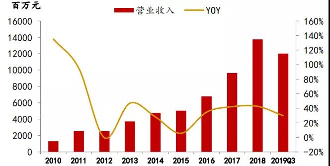 圖表16 中環(huán)股份營(yíng)業(yè)收入(百萬(wàn)元)
